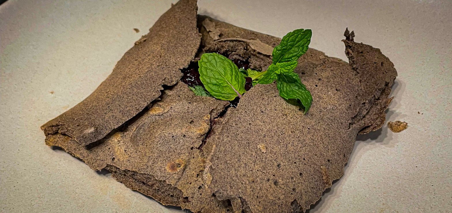 Buckwheat Galette With Peanut Butter & Blackberry Preserve