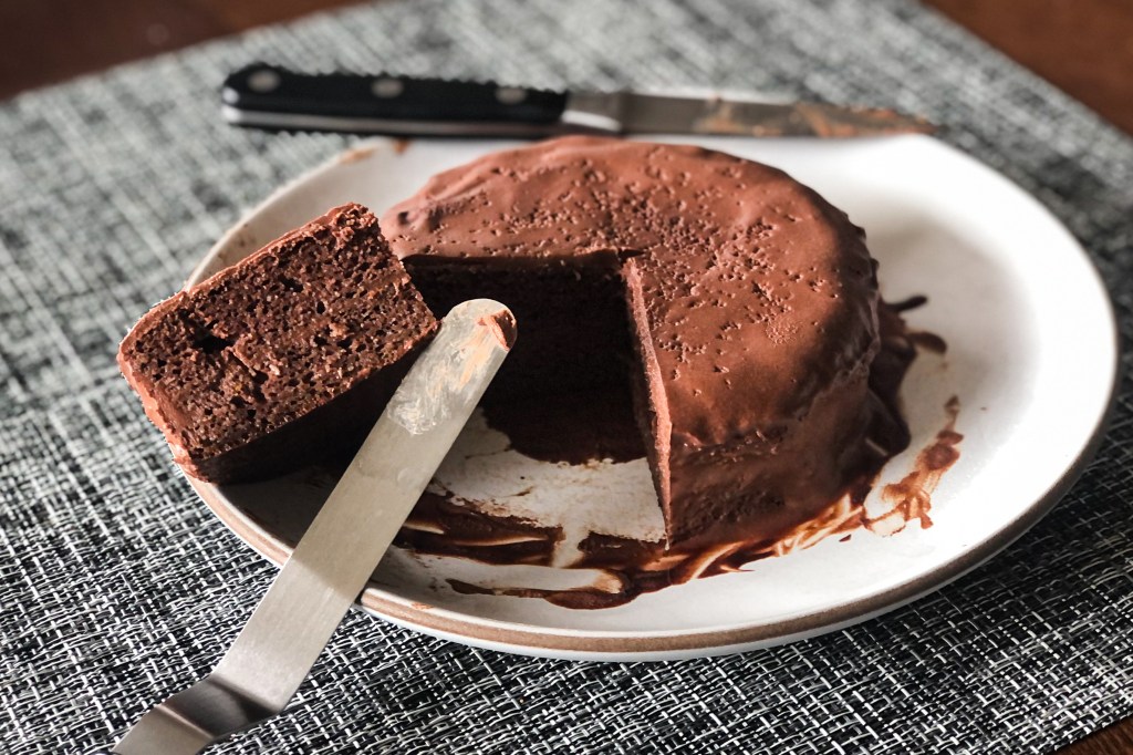 There was, however, one problem left to solve: I wanted the cake to be moist inside, which is why we put butter in cake batters. However, since my cake was dairy-free, I replaced butter with olive oil. Finally, I made the chocolate ganache with almond milk.