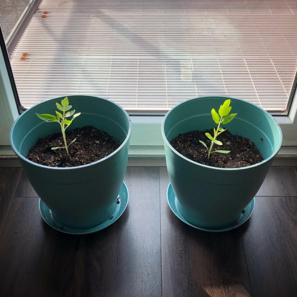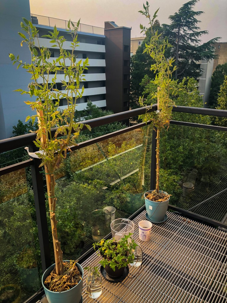 Initially, I saw the plants develop quite large sun leaves, and they were bushy. So I took my plants outdoors by the end of April, and soon I learned a lesson about planting in balconies: it’s much windier than at ground level. So I had to secure them, making it harder for me to move them around to optimize the sunlight.